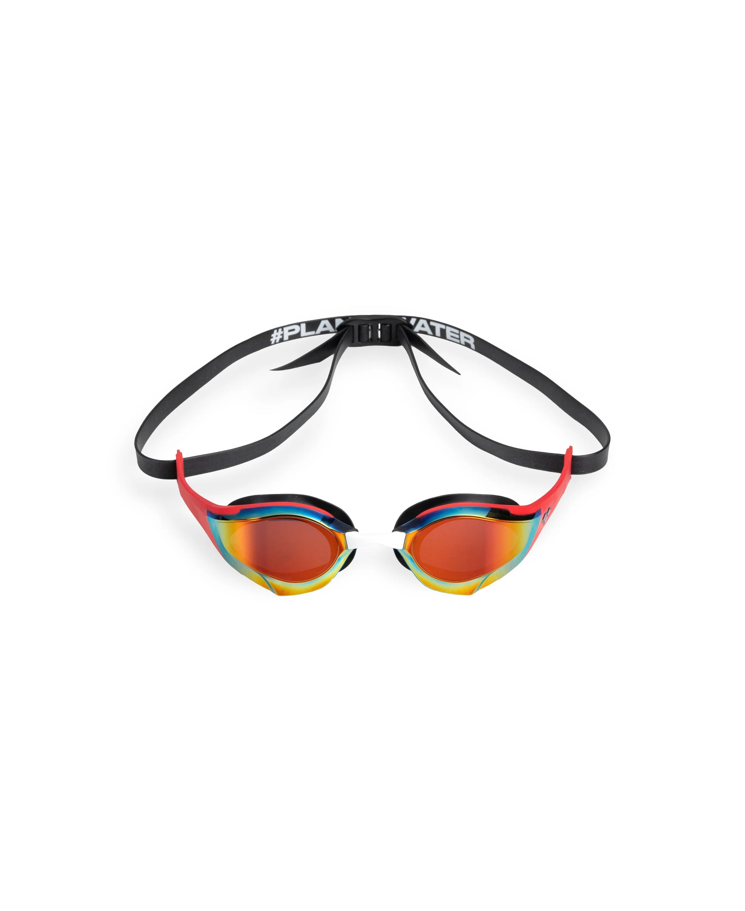 Svømmebrillen har en lav profil, behagelig pasform og giver et klart udsyn med ca. 180 graders synsfelt, så du nemt kan orientere dig i bassinet. De spejlede linser gør brillen velegnet til både indendørs og udendørs svømning.