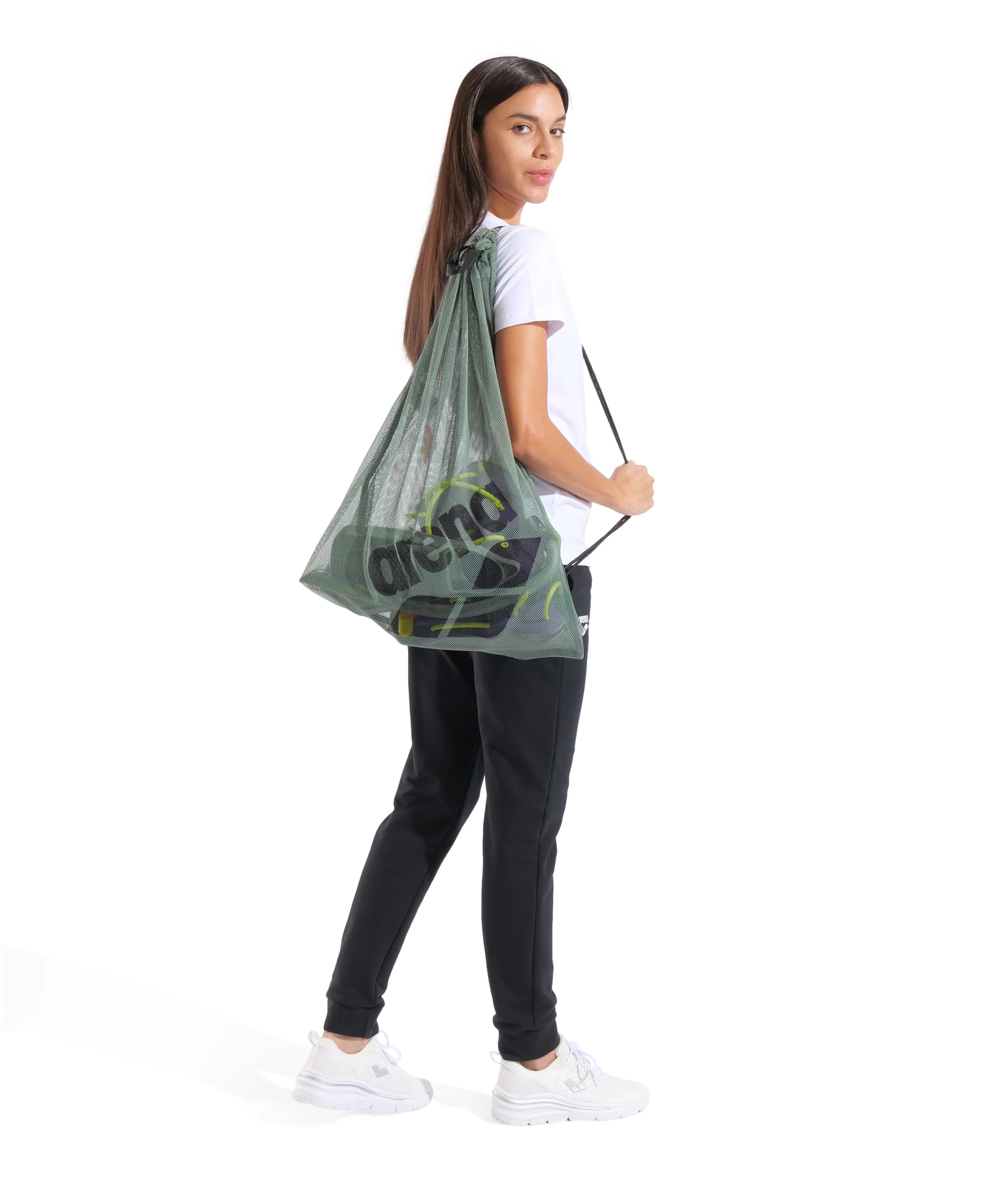 De justerbare og komfortable stropper giver fleksibilitet, så du både kan bære nettet i hånden eller som en rygsæk. Perfekt til svømmere, der har brug for en enkel og smart løsning til opbevaring af træningsudstyr.